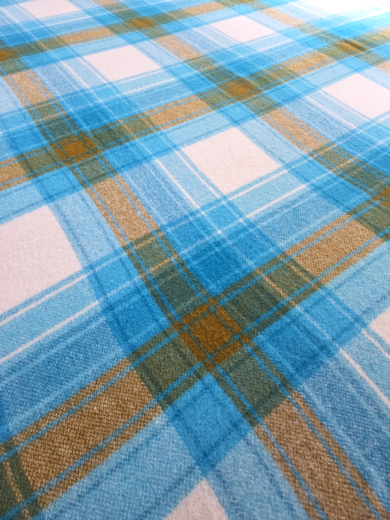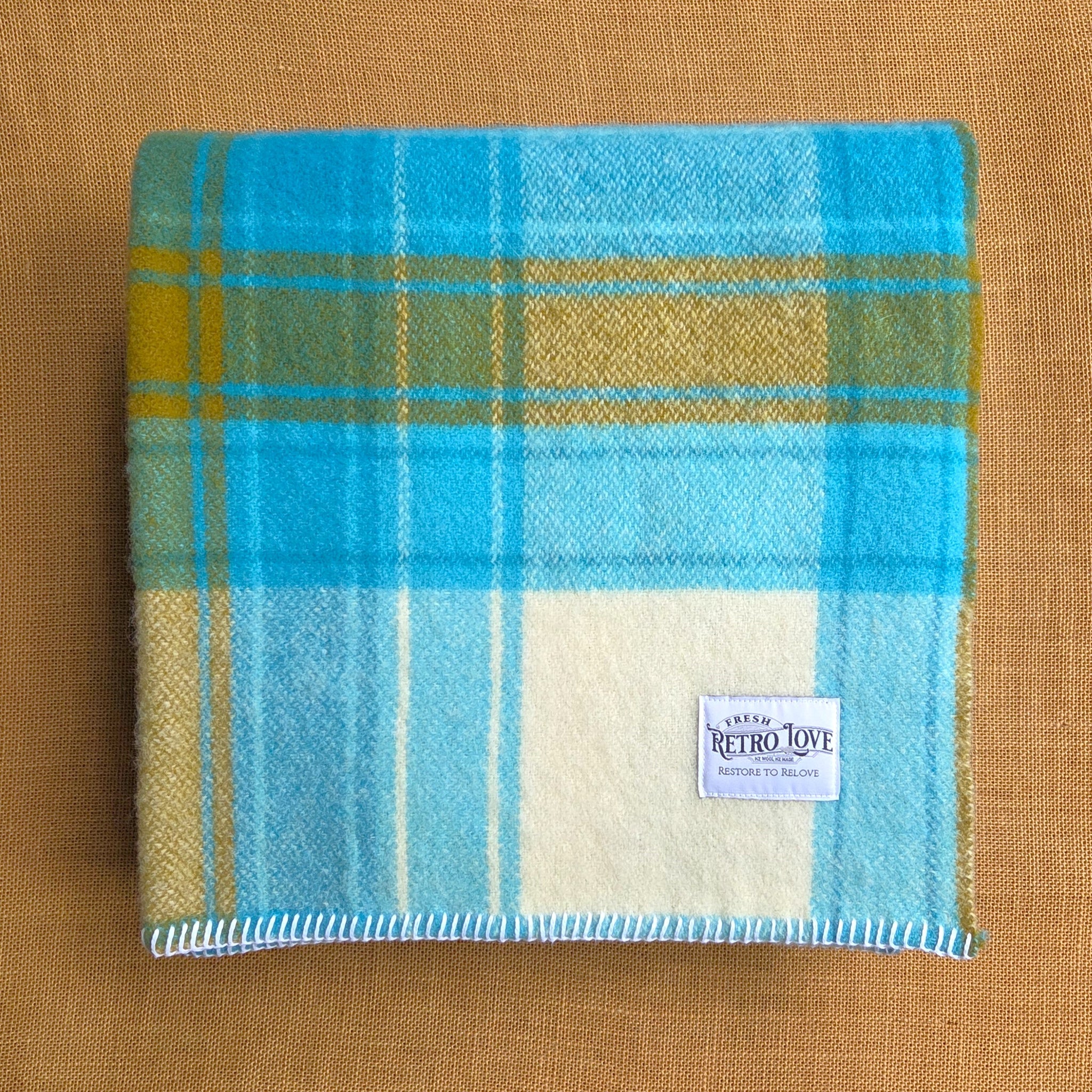 Vibrant bold, turquoise, cream and mustard in this classic retro plaid design. Classic 70's kiwiana vibe!