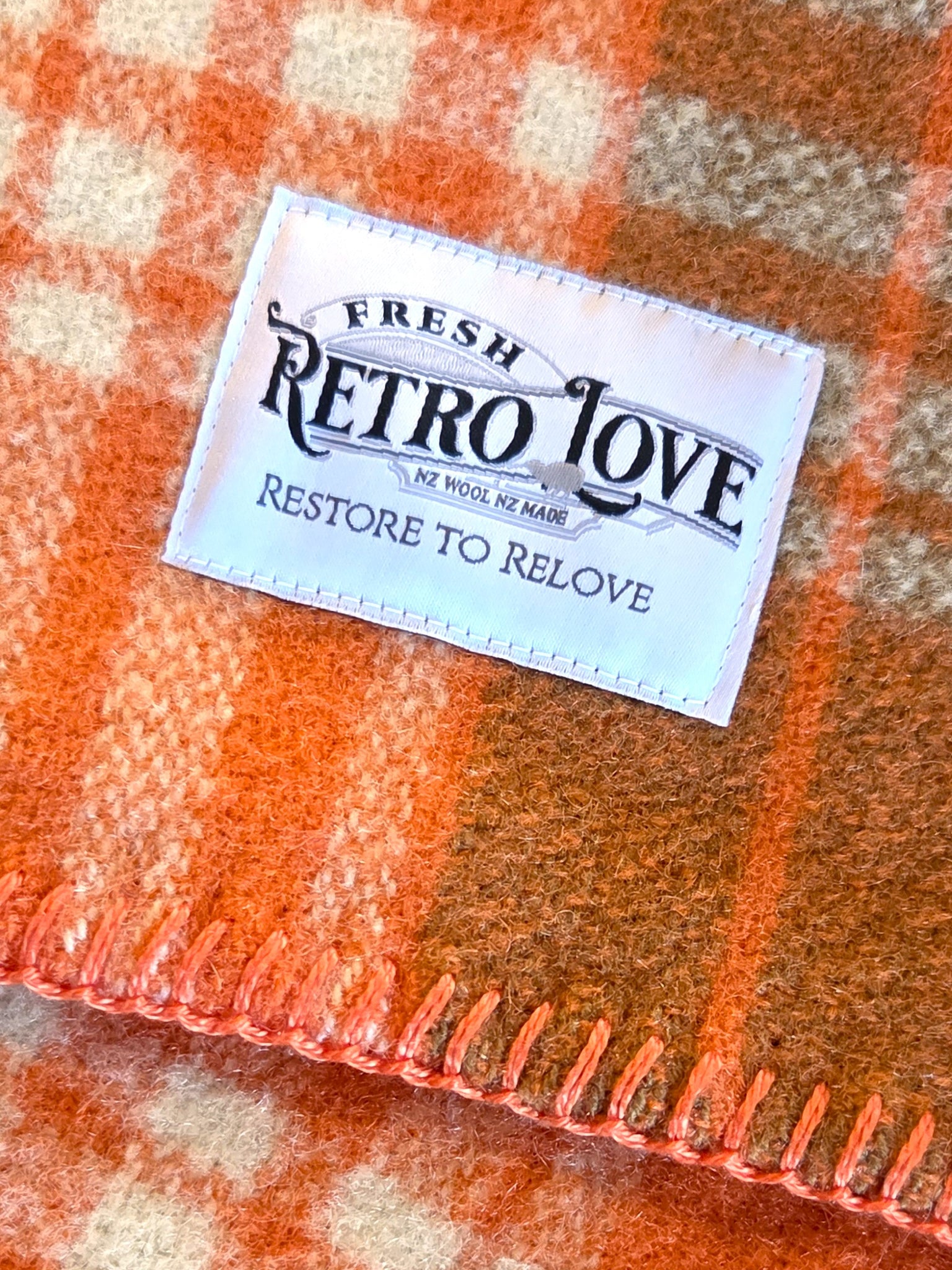Makers label is from the Chateau range, Made in New Zealand. A Fresh Retro Love, Restore to Relove label has been added on an opposite corner.
